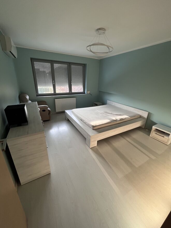 Piętro (70,29 m²): trzy sypialnie (w tym główna 17,77 m²) oraz komfortowa łazienka (14,5 m²). W sypialni oraz w jednym z pokoi klimatyzacja. W każdym z pokoju zabudowana szafa.